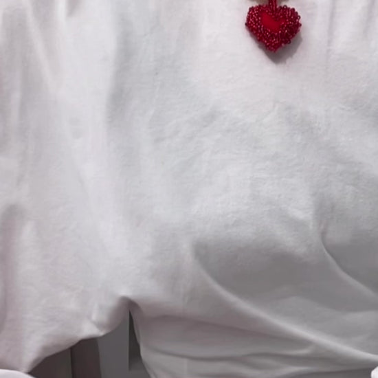 Handmade heart adorned with glass beads. The necklace can be worn with or without the heart. A timeless piece of jewelry that beautifully enhances any outfit.