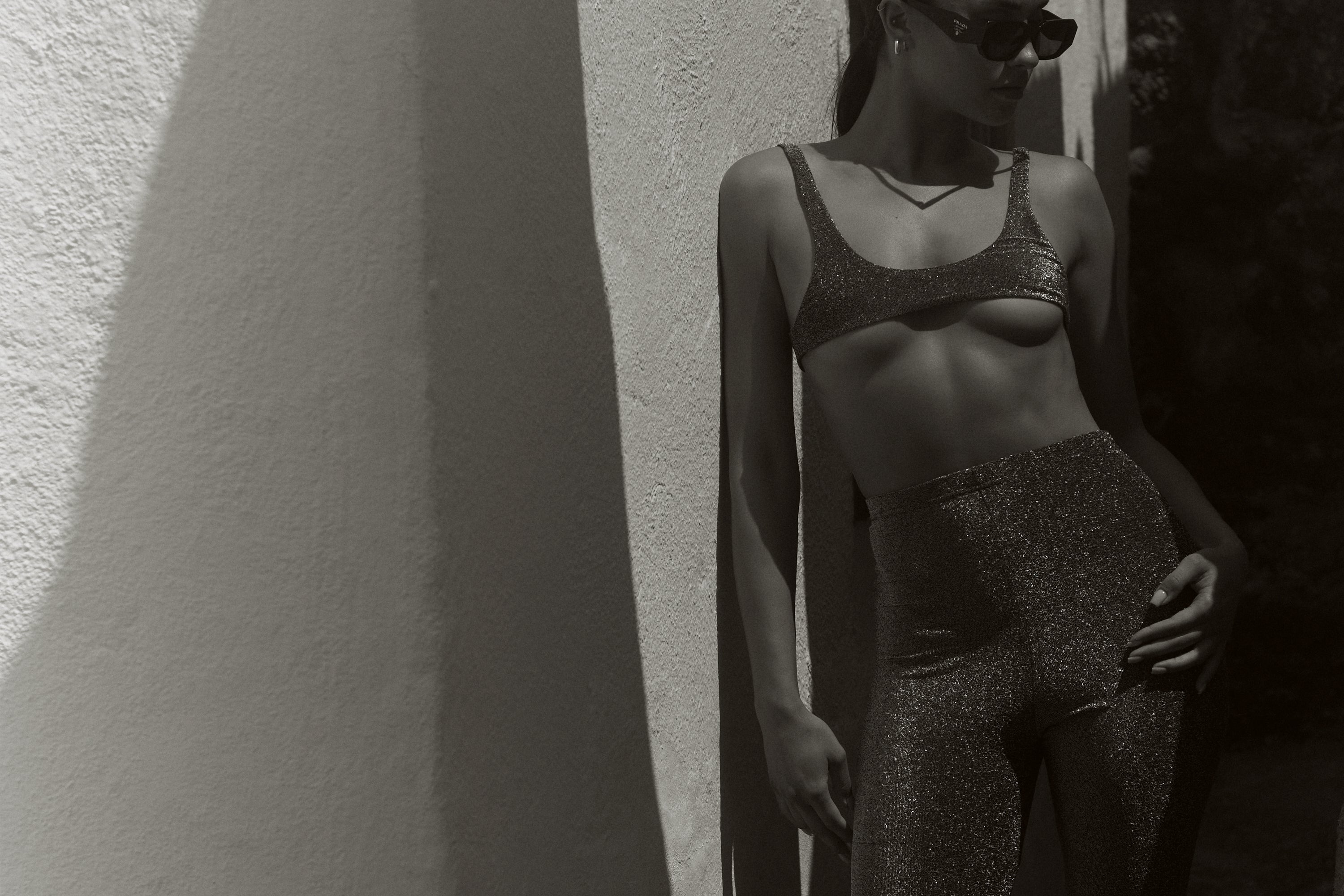 - 78% Polyamide, 14% Lurex, 8% Elastane
