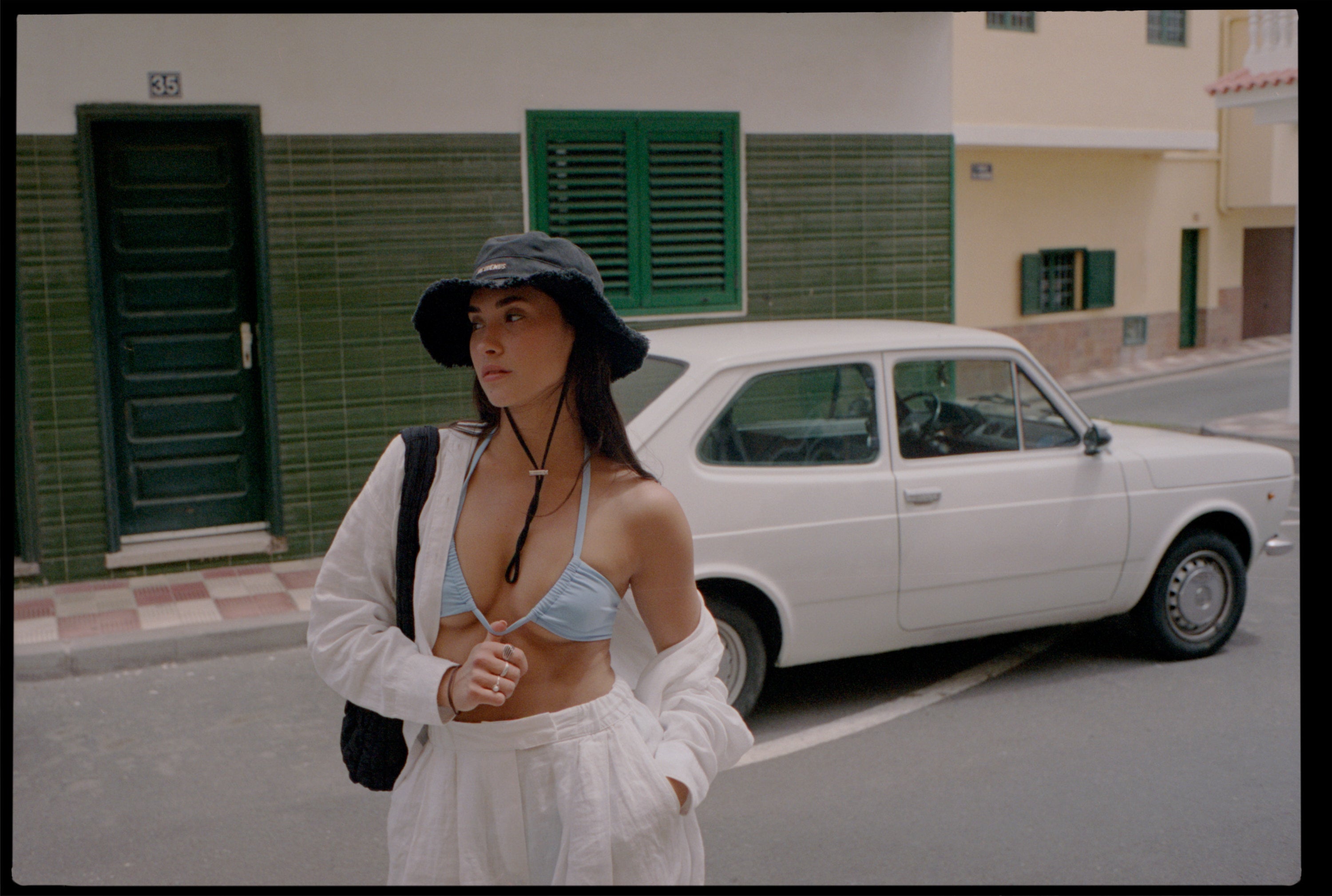 The LILY baby blue top offers various styling options, allowing you to create a new version of the top every day. With adjustable cup width, it's perfect for sunbathing!